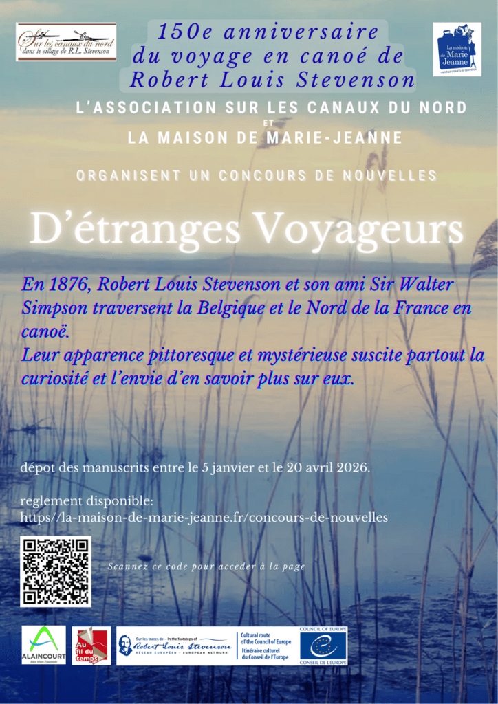 A l’occasion du 150e anniversaire du voyage en canoë de Robert Louis Stevenson, les associations Sur Les canaux du Nord, Dans le sillage de Robert Louis Stevenson, en partenariat avec La Maison de Marie-Jeanne, organisent un concours de nouvelles pour fêter cet événement.